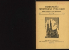 nie ukazywalo się w l. 1940-1945 i 1950-1956 ; Od 1920 podtyt.: miesięcznik duchowieństwa diecezji podlaskiej ; Od 1922 podtyt.: wydawnictwo kurii diecezjalnej.Od 1934, nr 3 podtyt.: miesięcznik urzędowy kurii diecezjalnej ; Od 1949 podtyt.: organ urzędowy kurii diecezjalnej.Na k. tyt. rocz. 1920-1921 m.wyd. Łuków.