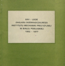 Dwudziestopięciolecie Zakładu Doświadczalnego Instytutu Mechaniki Precyzyjnej w Białej Podlaskiej 1952-1967[błędna data]!] ; 44 s. : fot. ; 21 cm