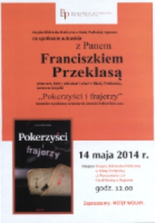 Tytuł: Plakat : [Inc.:] Miejska Biblioteka Publiczna w Białej Podlaskiej zaprasza na spotkanie autorskie z panem Franciszkiem Przeklasą [...} autorem książki "Pokerzyści i frajerz"...i
