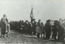 1 fotokopia czarno-biała ; 11x17 cm ; Na zdjęciu widoczna orkiestra Gimnazjum Męskiego im. J.I. Kraszewskiego i poczet sztandarowy Gimnazjum Żeńskiego im. E. Plater