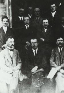 1 fot. czarno-biała ; 17x11 cm ; Siedzą od lewej : Sadownik Jan, Sakowicz Jan, Rudzki Hipolit