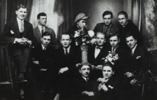 1 fotokopia czarno-biała ; 11,5x17 cm ; Stoją od lewej: Rytel, 3 - Zygmunt Kozakiewicz ; siedzą od lewej: 2- Franciszek Wróblewski, 4- Tadeusz Klepacki