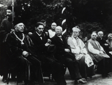 1 fotokopia czarno-biała ; 16x21,5 cm ; Na fotografii honorowi goście, od lewej : prof. Wacław Sobieski - historyk UJ w Krakowie, Kazimierz Pieracki - kurator Okręgu Szkolnego Lubelskiego, Kazimierz Bartoszewicz - publicysta i literat, ks. Henryk Przeździecki - biskup Diecezji Podlaskiej