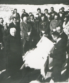Z lewej strony ks. Stanisław Tuz - proboszcz parafii św. Anny w Białej Podlaskiej, akt odczytuje Wacław Zysk - sekretarz magistratu ; 1 fotokopia czarno-biała ; 16x12 cm