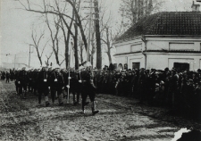 1 fotokopia czarno-biała ; 9,5x14,5 cm ; na ul. Warszawskiej w Białej Podlaskiej przy bramie do Parku Radziwiłłowskiego