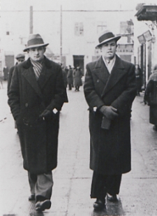 1 fotokopia czarno-biała ;13x8,5 cm ; w głębi widoczny sklep - wędlinarnia Biernackiego