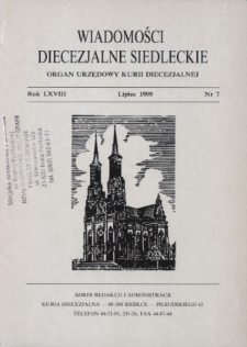 | Wiadomości Diecezjalne Siedleckie : organ urzędowy Kurii Diecezjalnej R. 68 (1999) nr 7 | 2022-05-11 |