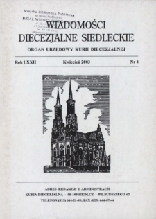 | Wiadomości Diecezjalne Siedleckie : organ urzędowy Kurii Diecezjalnej R.72 (2003) nr 4 | 2024-09-11 |