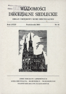 | Wiadomości Diecezjalne Siedleckie : organ urzędowy Kurii Diecezjalnej R.72 (2003) nr 10 | 2024-09-11 |