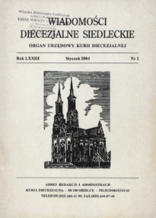 | Wiadomości Diecezjalne Siedleckie : organ urzędowy Kurii Diecezjalnej R.73 (2004) nr 1 | 2024-09-11 |
