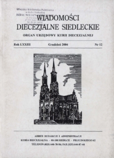 | Wiadomości Diecezjalne Siedleckie : organ urzędowy Kurii Diecezjalnej R.73 (2004) nr 12 | 2024-09-11 |