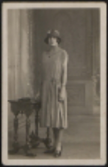 Title: Kobieta stojąca przy stoliku [fotografia]