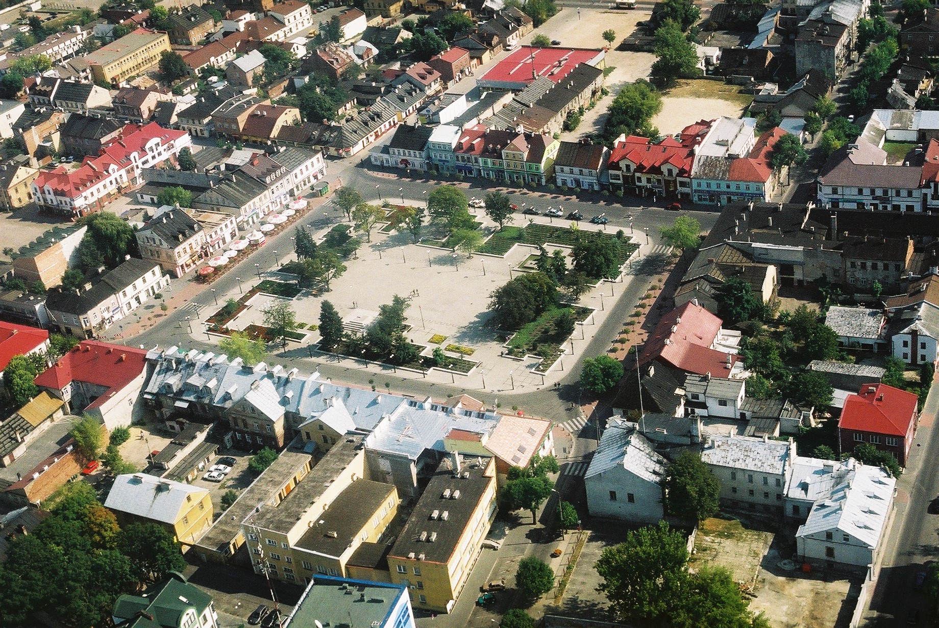 Biała Podlaska (woj. lubelskie) ; Fotografia lotnicza polska ; Widok z lotu ptaka ; Miasta ; Budownictwo miejskie ; Ulice ; Place ; Plac Wolności (Biała Podlaska) ; 2001-