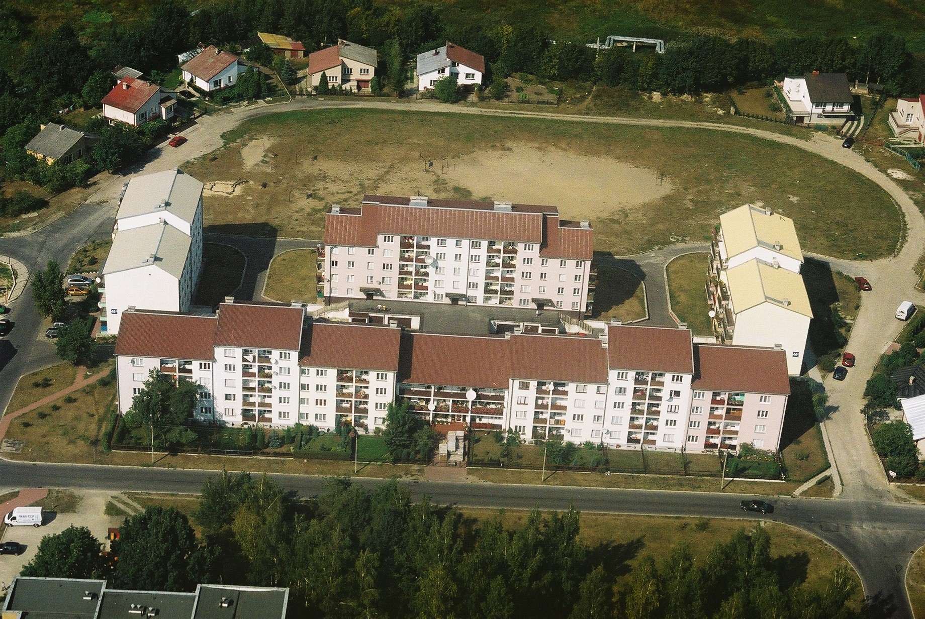 Biała Podlaska (woj. lubelskie) ; Fotografia lotnicza polska ; Widok z lotu ptaka ; Miasta ; Osiedle mieszkaniowe ; Budownictwo miejskie ; Ulice ; Ulica Łukaszyńska (Biała Podlaska) ; Ulica Na Skarpie (Biała Podlaska) ; 2001-