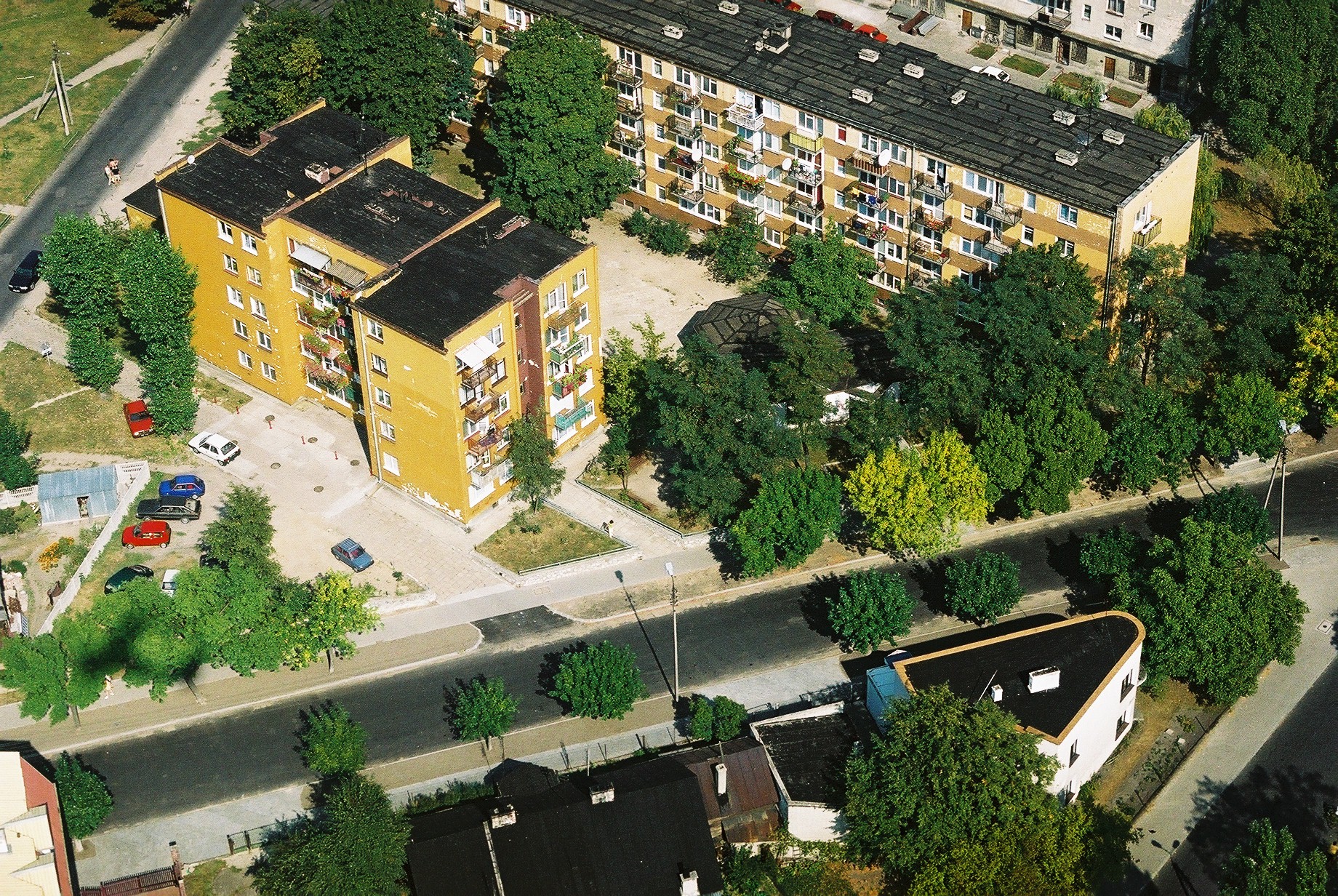 Biała Podlaska (woj. lubelskie) ; Fotografia lotnicza polska ; Widok z lotu ptaka ; Miasta ; Osiedle mieszkaniowe ; Budownictwo miejskie ; Ulica Kolejowa (Biała Podlaska) ; Ulice ; 2001-