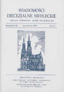 | Wiadomości Diecezjalne Siedleckie : organ urzędowy Kurii Diecezjalnej R. 87 (2018) nr 1-2 | 2024-09-11 |
