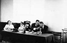 Konkurs czytelniczy dla kobiet zorganizowany przez Zarząd Główny Ligi Kobiet Polskich i Powiatową i Miejską Bibliotekę Publiczną w Białej Podlaskiej w pow. bialskim ; od lewej: Cecylia Legut (PiMBP), Maria Nekanda -Trepka (instruktor PiM BP), n.n., dr Lucjan Bukała, Tadeusz Kwaśniewski (z-ca instruktora d/s kultury pow. bialskim)