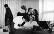 Konkurs czytelniczy dla kobiet zorganizowany przez Zarząd Główny Ligi Kobiet Polskich i Powiatową i Miejską Bibliotekę Publiczną w Białej Podlaskiej w pow. bialskim ; przy stole siedzi Cecylia Legut (bibliotekarz PiMBP w Białej Podlaskiej)