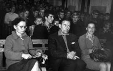 Konkurs czytelniczy dla kobiet zorganizowany przez Zarząd Główny Ligi Kobiet Polskich i Powiatową i Miejską Bibliotekę Publiczną w Białej Podlaskiej w pow. bialskim ; od lewej : Janina Gruszko (kierownik GBP w Janowie Podlaskim), Edward Kibort (nauczyciel ZSZ), Maria Nekanda-Trepka (instruktorPiMBP)