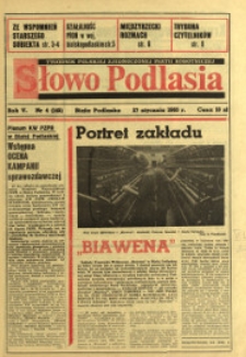 | Słowo Podlasia : tygodnik Polskiej Zjednoczonej Partii Robotniczej R. 5 (1983) nr 4 (145) | 2018-09-26 |
