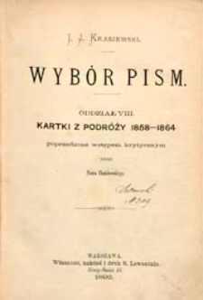 | Kraszewski, Józef Ignacy (1812-1887), 1892, Kartki z podróży 1858-1864 poprzedzone wstępem krytycznym | Nov 5, 2020 |